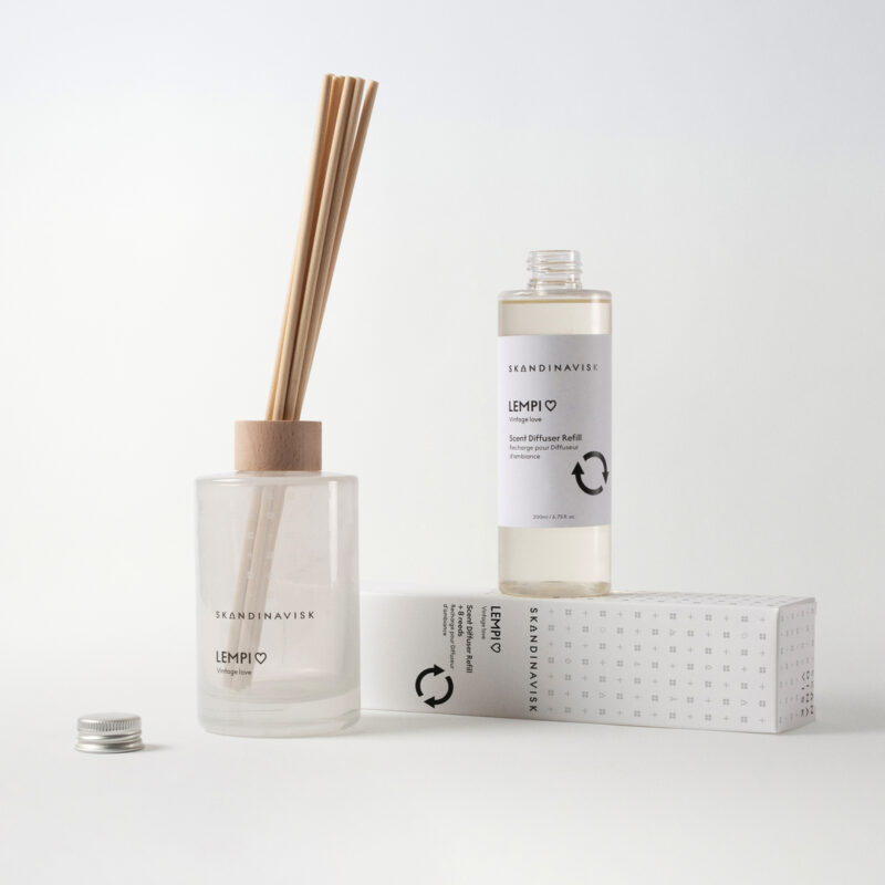 Simply put the reeds in the diffuser – the more reeds, the stronger the scent. Allow a few days for the scent to start diffusing. No need to flip the reeds. Refill once finished or reuse as a vase for wildflowers. Change the reeds when replacing the liquid.